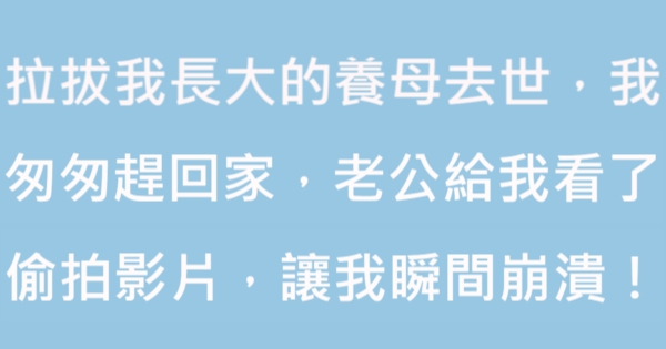 哈摟哈摟各位讀者~~我是有錢人這麼想小編Choco!今天要來說說關於「拉拔我長大的養母去世,我匆匆趕回家,老公給我看了一段偷拍影片,讓我瞬間崩潰!」,不知道大家有沒有興趣呢!一起來看看是怎麼樣的事吧!