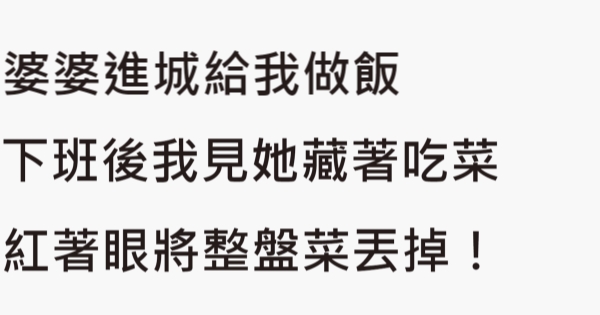哈摟哈摟各位讀者~~我是有錢人這麼想小編Choco!今天要來說說關於「婆婆進城給我做飯,下班後我見她藏著吃菜,紅著眼將整盤菜丟掉!」,不知道大家有沒有興趣呢!一起來看看是怎麼樣的事吧!