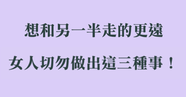 女生必看!想和另一半走的更遠,女人切勿做出這三種事!!!