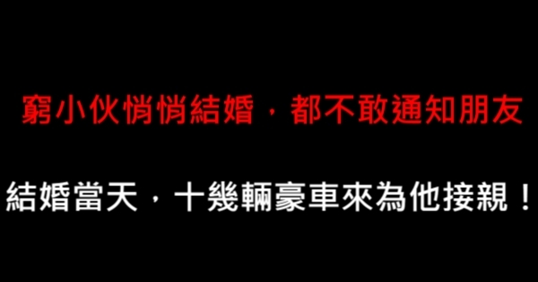 窮小伙偷結婚,不敢通知朋友,結婚當天,十幾輛豪車來為他接親!