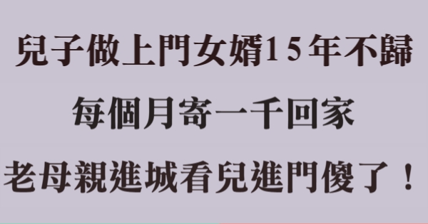 大家好,我是有錢人這麼想小編Choco!今天要來說說關於「兒子做上門女婿15年不歸,每個月寄一千回家,老母親進城看兒進門傻了!」的事!不知道大家對於這個有多了解呢?一起來看看吧!