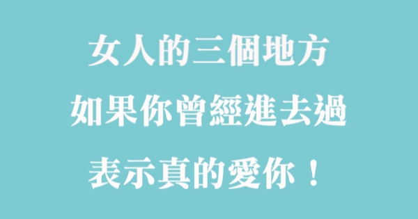 女人的三個地方,如果你曾經進去過,表示真的愛你!!!