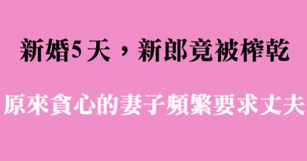 新婚5天,新郎竟被榨乾!原來貪心的妻子竟然如此頻繁要求丈夫!
