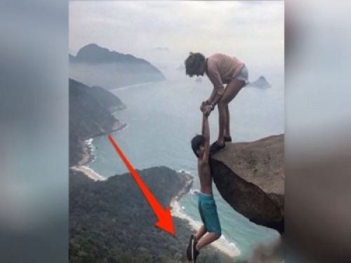 父母在懸崖邊幫兒子拍「玩命照片」引起網友大罵,當鏡頭拉遠網友們竟羞愧的「道歉刪文」