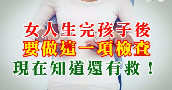 大家好,我是小寶貝媽媽經小編CA!今天要來說說關於「女人生完孩子後,要做這一項檢查,現在知道還有救!」的事!不知道大家對於這個有多了解呢?一起來看看吧!