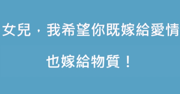 女兒,我希望你既嫁給愛情,也嫁給物質!!!