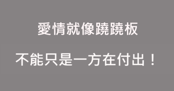 愛情就好像是蹺蹺板,不能只是一方付出,那樣就會失去平衡。