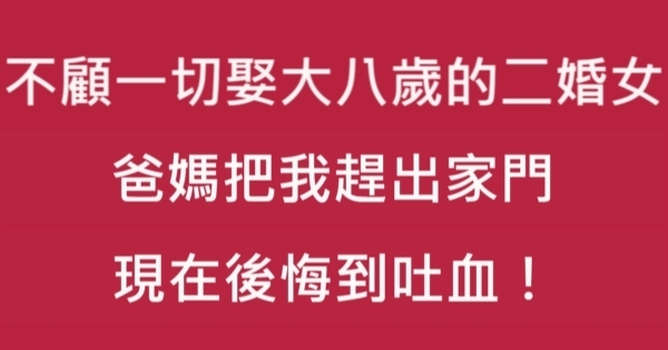 大家好,我是 Pineapple 今天來跟你說說 不顧一切娶大我8歲的二婚女,爸媽把我趕出家門,現在後悔到吐血!吧!讓我們來看看!