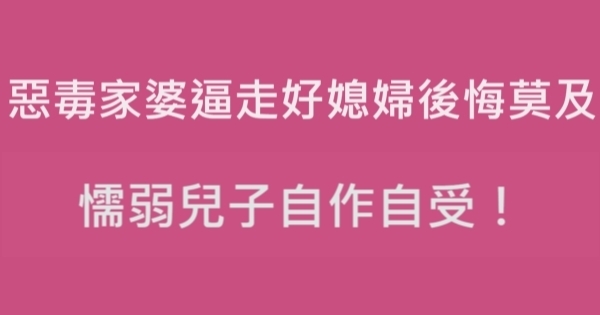 慢慢的,老公和家婆對她越來越不好,家婆罵她拖垮他們家兒子,害他們一直沒有孫子。老公是屬於那種對媽媽的話言聽必從,沒有主見的人,開始還好,慢慢的也在刻意躲避她……婆婆的話也越來越惡毒,兒子也越來越認同媽媽的話。