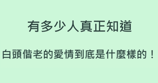 有多少人真正知道,白頭偕老的愛情到底是什麼樣的?