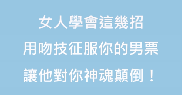 女性,男人更喜歡清楚的一件一件事情知道開始和結束。所以令人慾仙欲醉的熱吻在一開始就應該是舒緩的,讓你的舌尖輕輕的深入,逐步升級是男人的喜歡的。