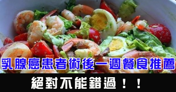 乳腺癌患者術後一週餐食推薦,絕對不能錯過!!!