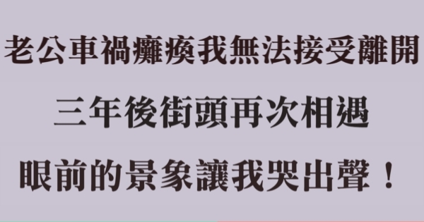 哈摟哈摟親愛的大家~~我是有錢人這麼想小編Choco!今天要來說說關「老公車禍癱瘓我無法接受離開,三年後街頭再次相遇,眼前的景象讓我哭出聲!」的事件!讓我們一起來看看吧!
