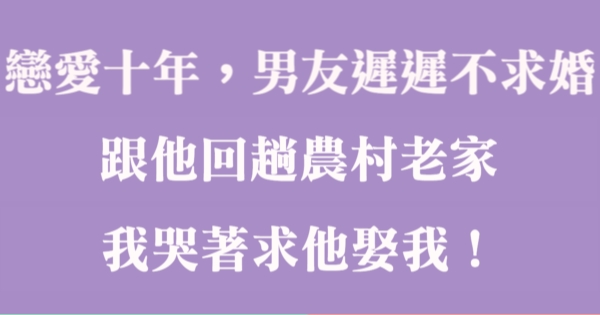 戀愛十年,男友一直不求婚,跟他回農村老家,我哭著求他娶我!
