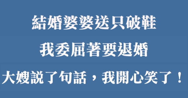 看完後是不是覺得Pineapple小編在有錢人這麼想分享的女人故事文章很好呢?想看更多好文,或是喜歡有錢人這麼想的文章的話,可以按讚追蹤女人談戀愛並分享這篇結婚婆婆送只破鞋,我委屈著要退婚,大嫂說了句悄悄話,我開心笑了!出去給大家一起看看喔!