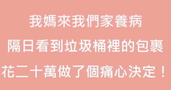我媽來我們家養病,隔日看到垃圾桶裡的包裹,花二十萬做個痛心決定!