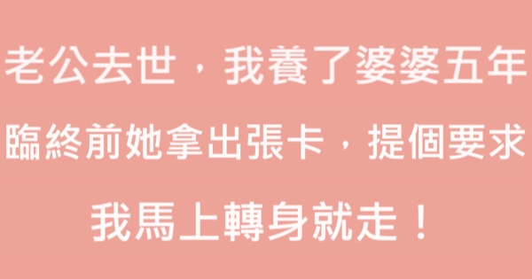 哈摟哈摟各位讀者~~我是有錢人這麼想小編Pineapple!今天要來說說關於「老公去世,我養了婆婆五年,臨終前她拿出一張卡,說了一個要求,我馬上轉身就走!」,不知道大家有沒有興趣呢!一起來看看是怎麼樣的事吧!