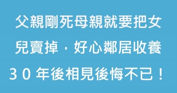 哈摟哈摟各位讀者~~我是有錢人這麼想小編Choco!今天要來說說關於「父親剛死母親就要把女兒賣掉,好心鄰居收養,30年後相見後悔不已!」,不知道大家有沒有興趣呢!一起來看看是怎麼樣的事吧!