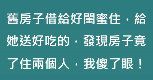舊房子借給好閨蜜住,給她送個好吃的,發現房子里住的人,我傻了眼!