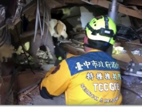 花蓮大地震!!搜救犬「鐵雄」勇敢穿梭大樓廢墟之間,發現受困者時,還很聰明知道用「這個」幫助救援,讓救援能夠成功!