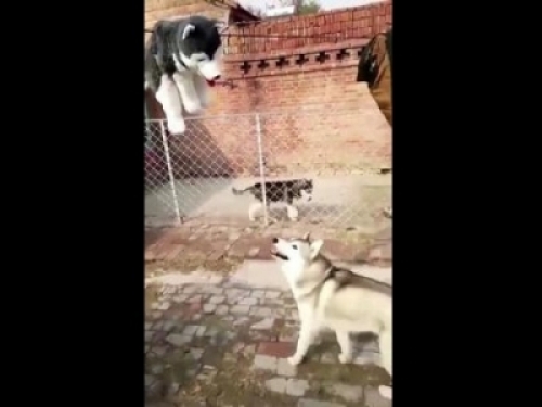 在底下不停的來回小碎步,想要救它,還有一隻二哈忍不住的直接站立起來,想把它用嘴救下來,腿都站直了,還是夠不到。缺心眼的二哈還是有一顆善良的內心。