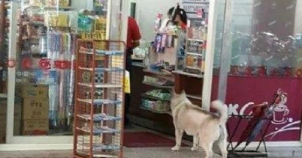 這隻二哈每天這個時間點,總會蹲在便利商店門口,知道牠的目的後,大家全都笑噴了XD