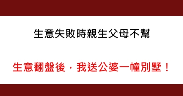 哈摟哈摟各位讀者~~我是有錢人這麼想小編Choco!今天要來說說關於「生意失敗時親生父母不幫,生意翻盤後,我送公婆一幢別墅!」,不知道大家有沒有興趣呢!一起來看看是怎麼樣的事吧!