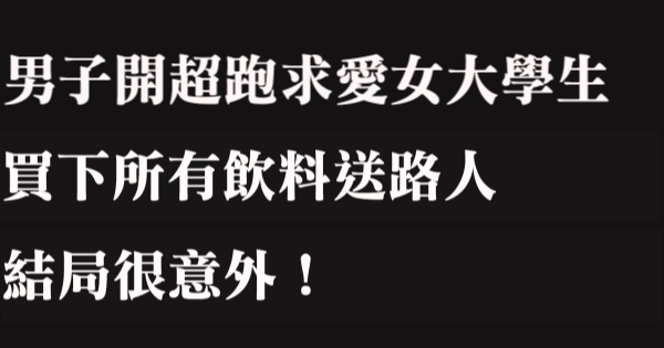 大家好,我是 CA 今天來跟你說說 男子開超跑求愛女大學生,買下所有飲料送路人,結局很意外!吧!讓我們來看看!