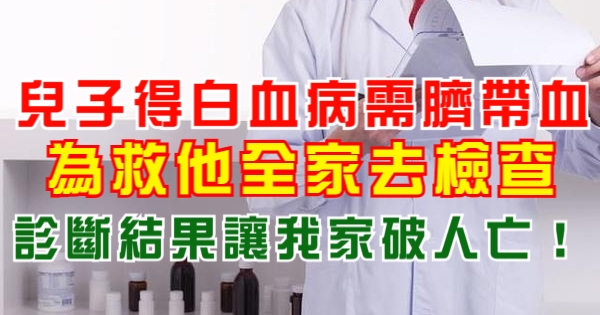 兒子得白血病需臍帶血,為救他全家去檢查,診斷結果讓我家破人亡!!!