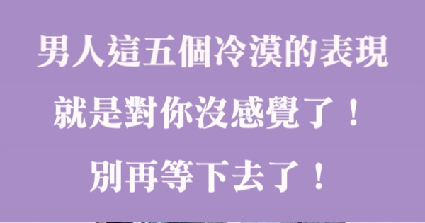 大家好,我是CA 今天來跟你說說 男人這五個冷漠的表現,就是對你沒感覺了!別再等下去了!吧!