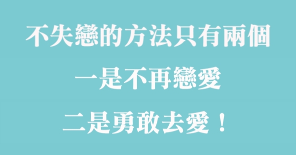 不失戀的方法只有兩個:一是不再戀愛,二是勇敢去愛!!!