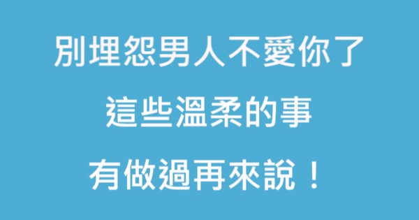 別抱怨男人不愛了,這些溫柔的事情,妳有做過再來說!!