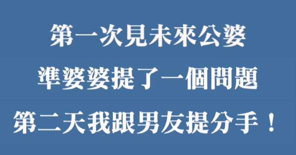 第一次見未來公婆,準婆婆提了一個問題,第二天我跟男友提分手!!