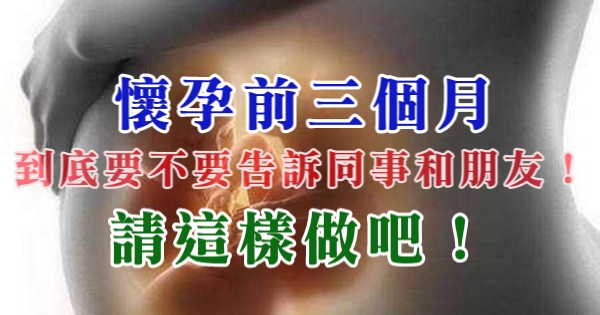 大家好,我是有錢人這麼想小編CA!今天要來說說關於「懷孕前三個月,到底要不要告訴同事和朋友,請這樣做吧!」的事!不知道大家對於這個有多了解呢?一起來看看吧!