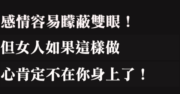 感情容易矇蔽雙眼,但女人如果這樣做,心思肯定不在你身上了。