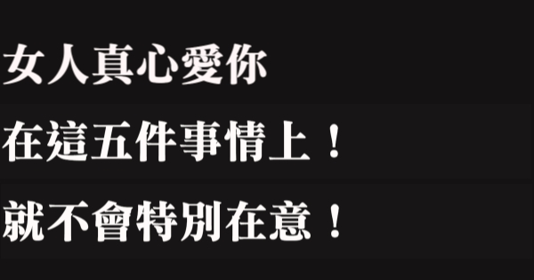 大家好,我是 CA 今天來跟你說說 女人真心愛你,在這五件事情上!就不會特別在意!吧!讓我們來看看!