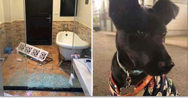 從楊女上載的照片中,她的浴室玻璃幕門全震碎,玻璃碎撒滿一地。