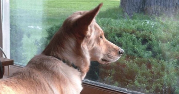 狗並沒有沖著貓吠叫,恰恰相反,它看起來很戀慕那隻貓。鄰家花貓總是坐在窗邊,而狗狗很喜歡就那樣地看著它。