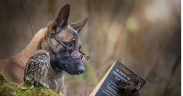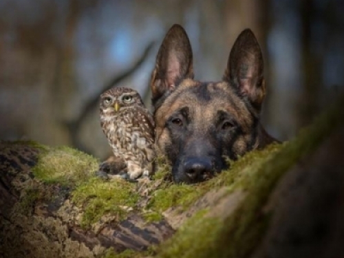 一個是生猛勇敢的狼犬,一個是呆萌可愛的貓頭鷹,這兩個看似毫無聯絡的小動物卻在Tanja Brandt的鏡頭下為大眾呈現出了不一樣的反差萌。