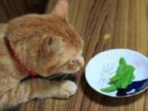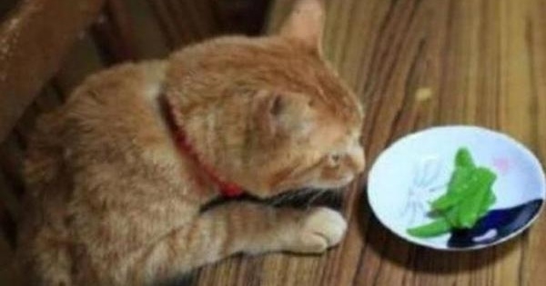 當然寵主們經常也會和貓咪開一些玩笑,去逗逗貓咪,就像這位寵主,寵主家的貓咪經常都是一副高冷的樣子,除了平常吃飯的時分,會主動來找寵主,其他時間很少見貓咪有主動的時分,於是寵主經常就會趁這個時間去逗逗貓咪,就像如今,原本是要上貓糧的,寵主直接給貓咪上了一個素菜。