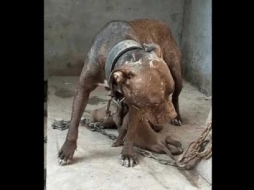 狗場的環境讓人看了不寒而慄,環境髒亂差得讓人堪憂。就算在天氣極為寒冷的時候,也是睡在這種環境裡邊。身上的鐵鏈也不曾掙脫過。一輩子在不見光的狗場裡,靜靜出產,獨自忍受慢慢死去。一生沒有人知道它的存在與功績。