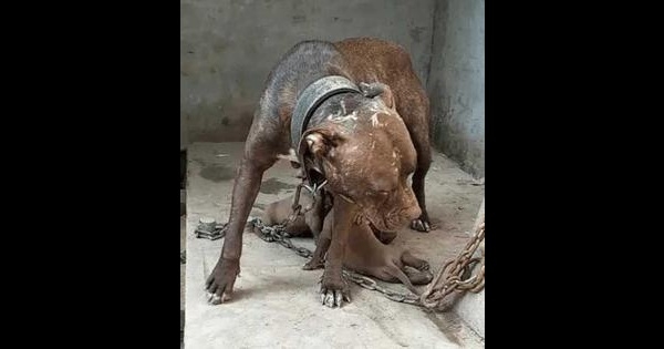 而看它的全身上下,傷痕累累,連它的四隻爪子都滿是傷痕,看上去應該屬於位元犬的一種,年輕的時候應該沒少幫老闆賺錢。