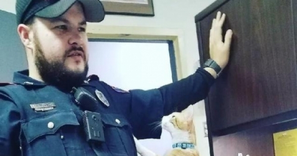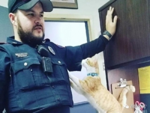 國外一家警察局從流浪小動物救助機構招募了一隻橘白色的喵星人警官,來幫助管理警察局內部的鼠患。