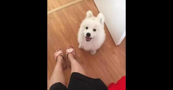 這位女子特別喜歡大型犬,本來想要養一隻哈士奇的,可是又聽說哈士奇特別搗蛋,還會拆家,所以就不敢養了。結果深思熟慮之後就買了一隻薩摩耶回家,就是這隻微笑天使。可是她還忘記了一件非常重要的事情,那就是薩摩耶可是和哈士奇並稱為雪橇三傻呀!