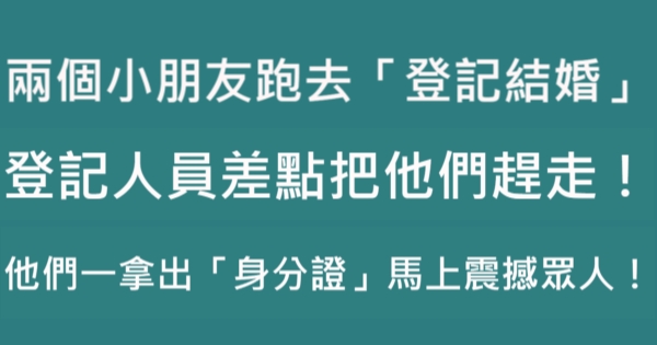大家好,我是有錢人這麼想小編Pineapple!今天要來說說關於「兩個小朋友跑去「登記結婚」登記人員差點把他們趕走!但他們一拿出「身分證」馬上震撼眾人!」的事!不知道大家對於這個有多了解呢?一起來看看吧!