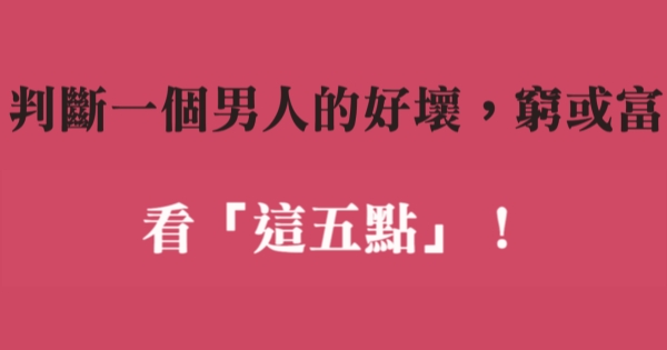 女人們,要判斷一個男人的好壞,窮或富,看「這五點」!