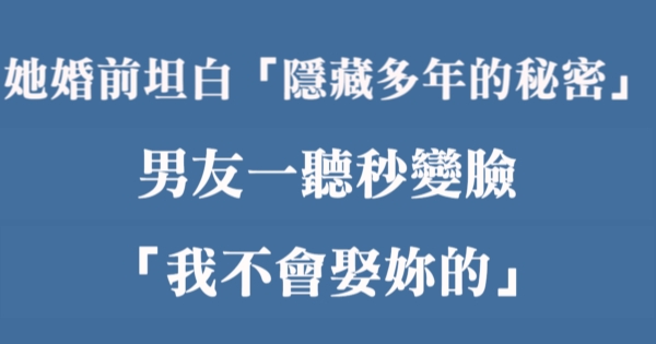 她婚前坦白「隱藏多年的秘密」,男友一聽變臉「我不會娶妳的」!
