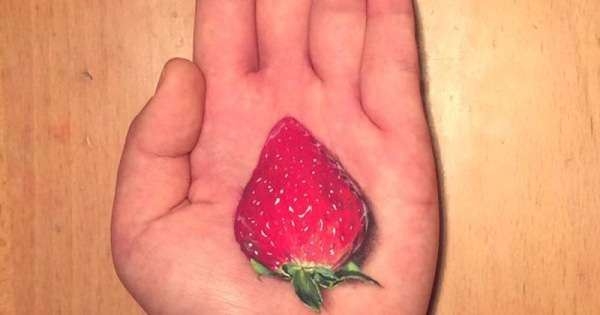 ▼答案在此。原來只要換一個角度,就能看出這其實並不是真正的草莓,而是網友繪製在掌心的畫。草莓顏色配搭得多逼真,許多人都被騙倒了,以為那是活生生的真草莓。