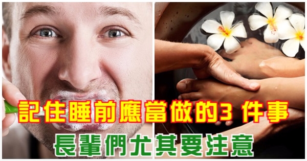 睡前3件事如果不做 對身體危害大!當人體過於疲憊時卻沒有及時紓解疲勞,當身體缺水時候卻沒有及時補水,這些都導致了身體抵抗力下降和疾病的出現。今天我就和大家在養生晚班車這個時刻一同來了解睡前不泡腳、不刷牙以及不喝水到底對身體有什麼影響?