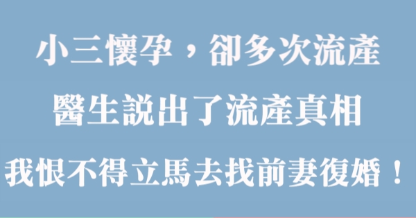 哈摟哈摟親愛的大家~~我是有錢人這麼想小編Choco!今天要來說說關「小三懷孕,多次原因不明的流產,醫生說出了流產真相,我恨不得立馬去找前妻復婚!」的事件!讓我們一起來看看吧!